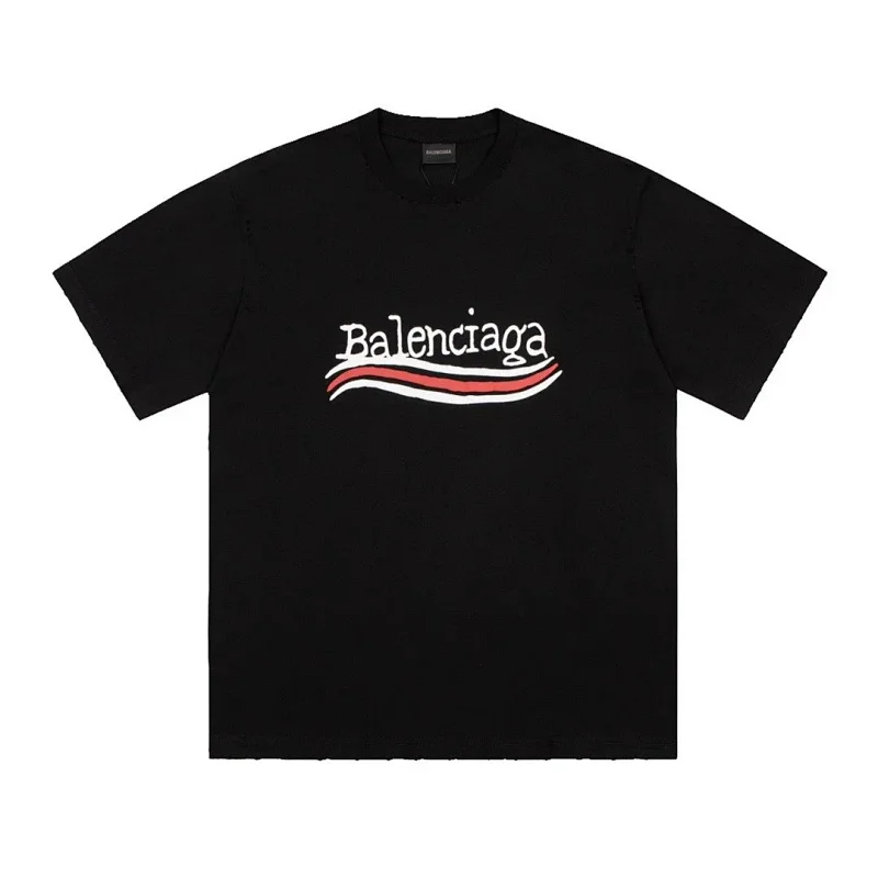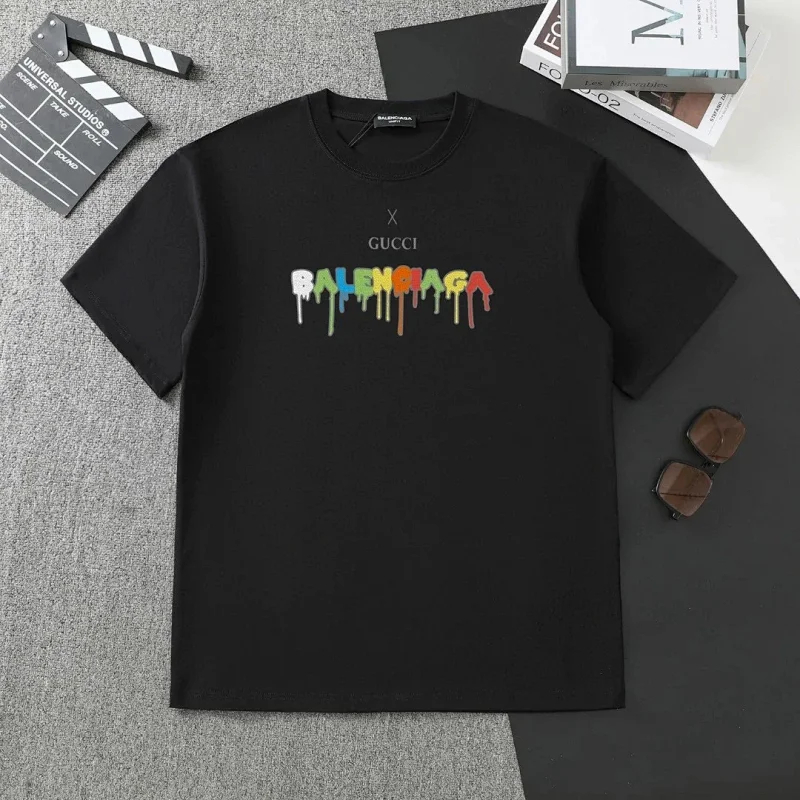 Balenciaga new double-layered fabric printed short-sleeved T-shirt-5177
