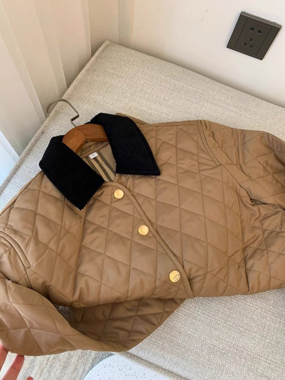 Home > Burberry classic corduroy collar diamond quilted down jacket in golden cotton-5300