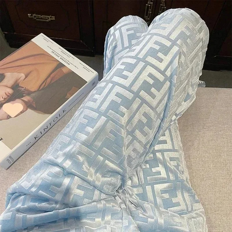Fendi Wide-leg pants with double F letters for women, autumn drape, loose casual pants, cool and stylish-2466