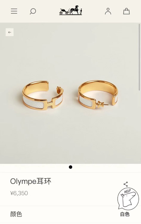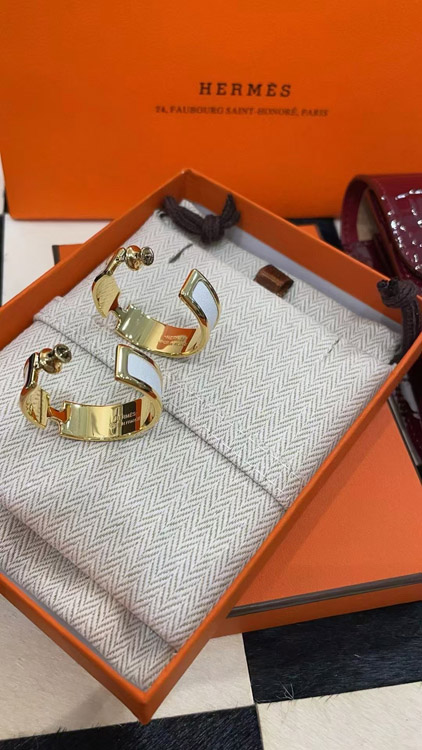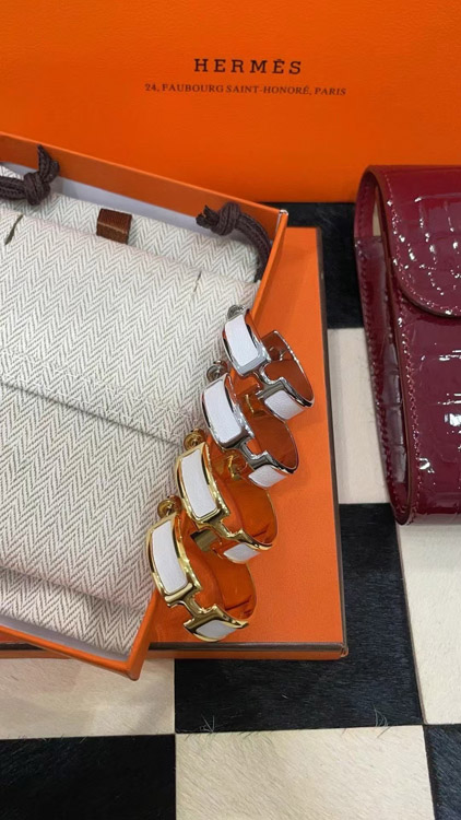 Hermès metal H letter white leather earrings-3714