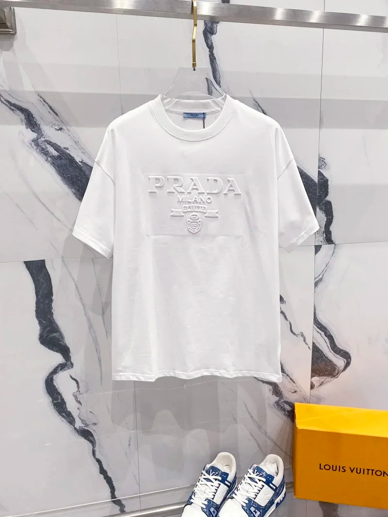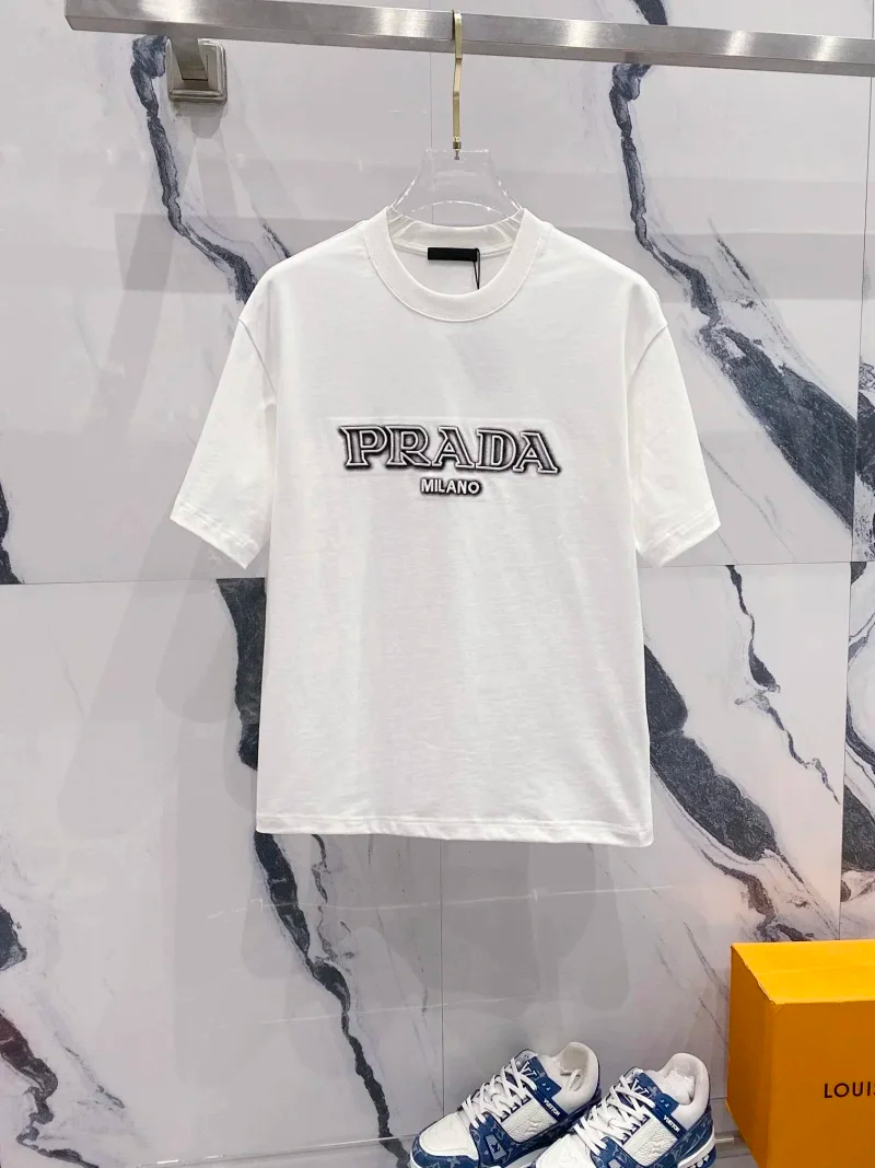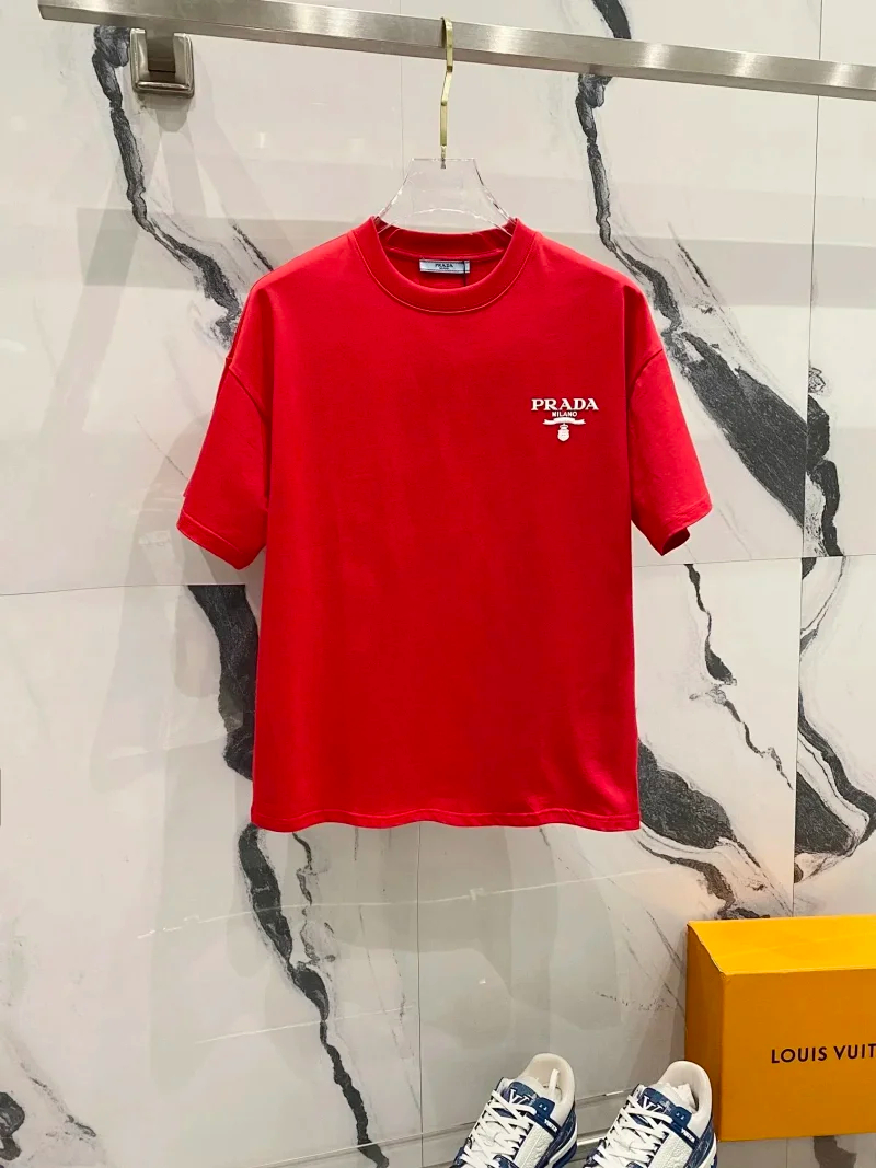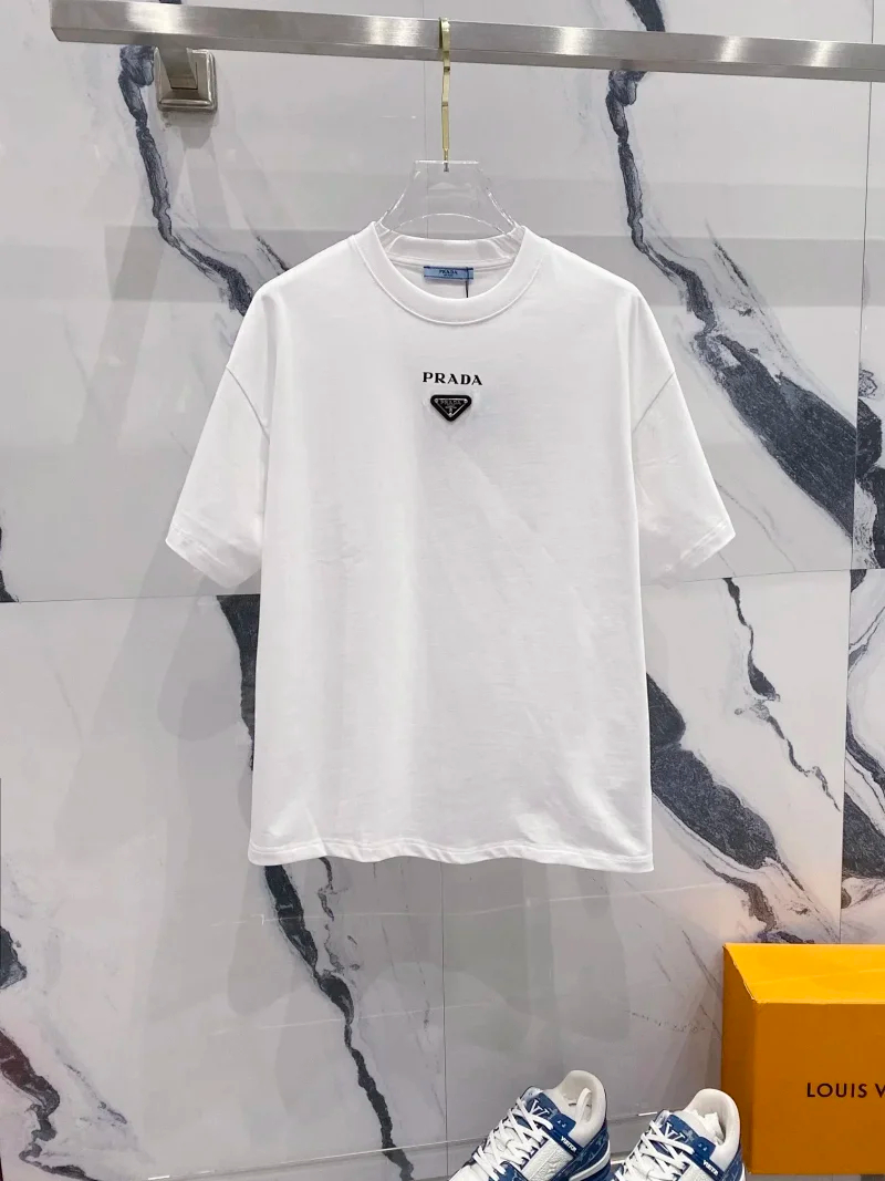 Prada Solid Color Logo Printed Round Neck Pullover Short Sleeve T-Shirt (39 styles)-2837