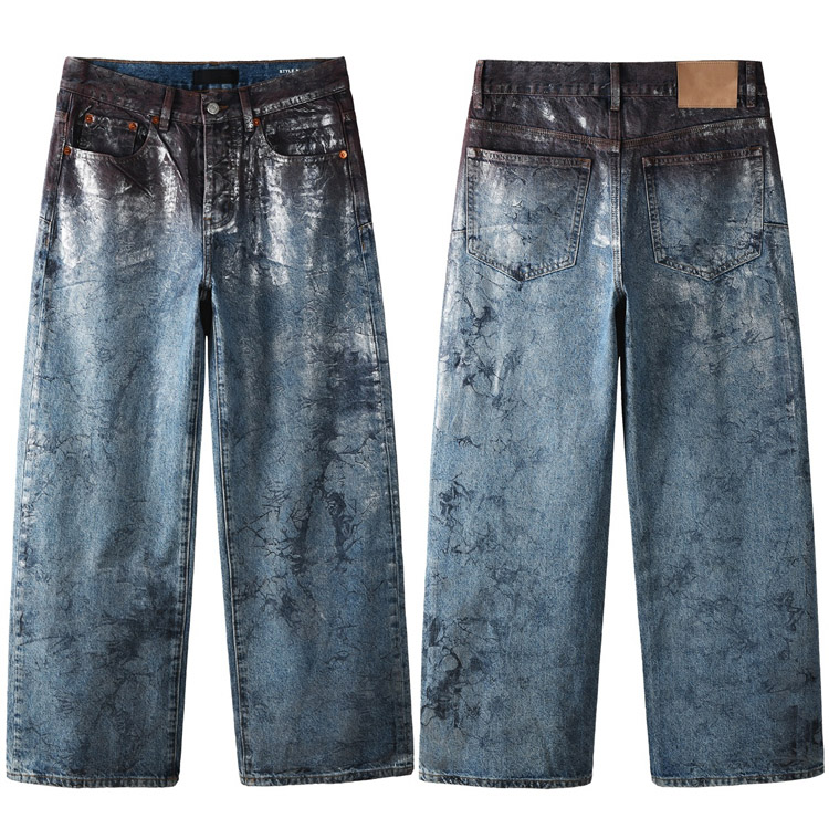 Home > Purple Brand new diamond-studded slim-fit skinny jeans with wide legs-4247