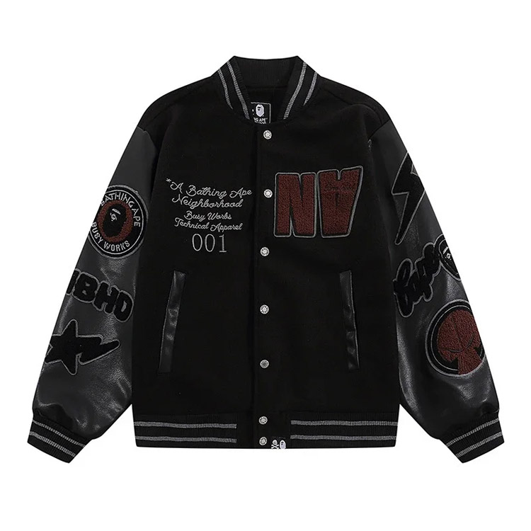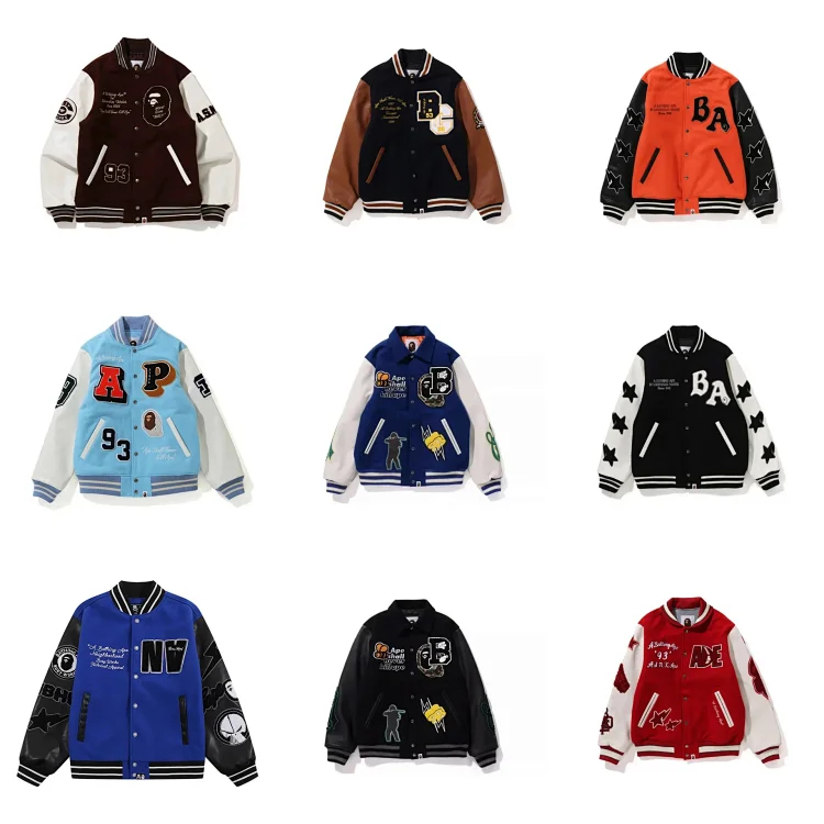 Home > BAPE Colorblock digital embroidered patch baseball jacket-4242