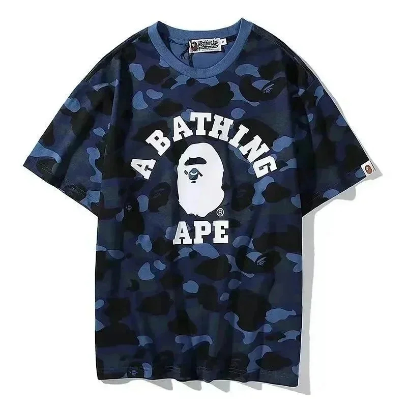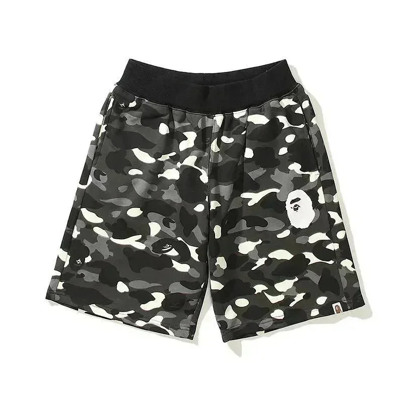 Bape shark zipper letter full print camouflage pattern short-sleeved T-shirt shorts set-2818