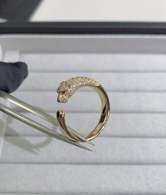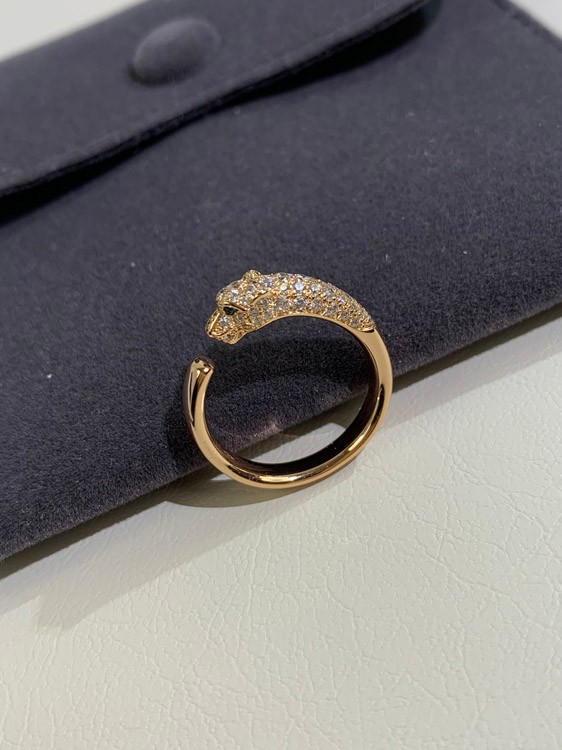Cartier half diamond leopard micro inlaid ring-3556