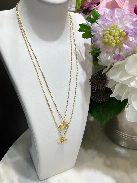 Dior gold diamond bee pendant double necklace-3706