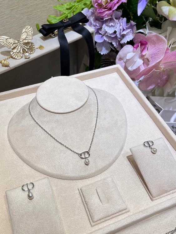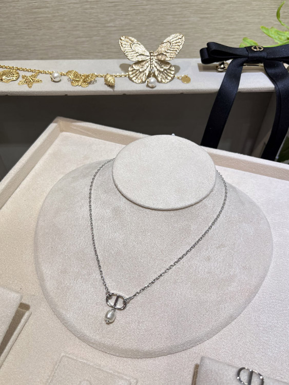 Dior Silver CD Small Pearl Pendant Necklace-3960
