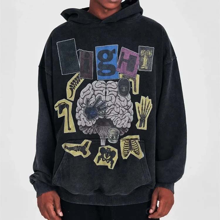 Home > Gallery Dept American retro distressed brain print loose hooded sweatshirt (28 styles)-2503