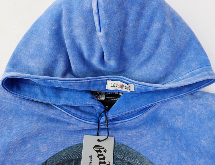 Godspeed Masked Print Washed Distressed Hooded Sweatshirt-4560