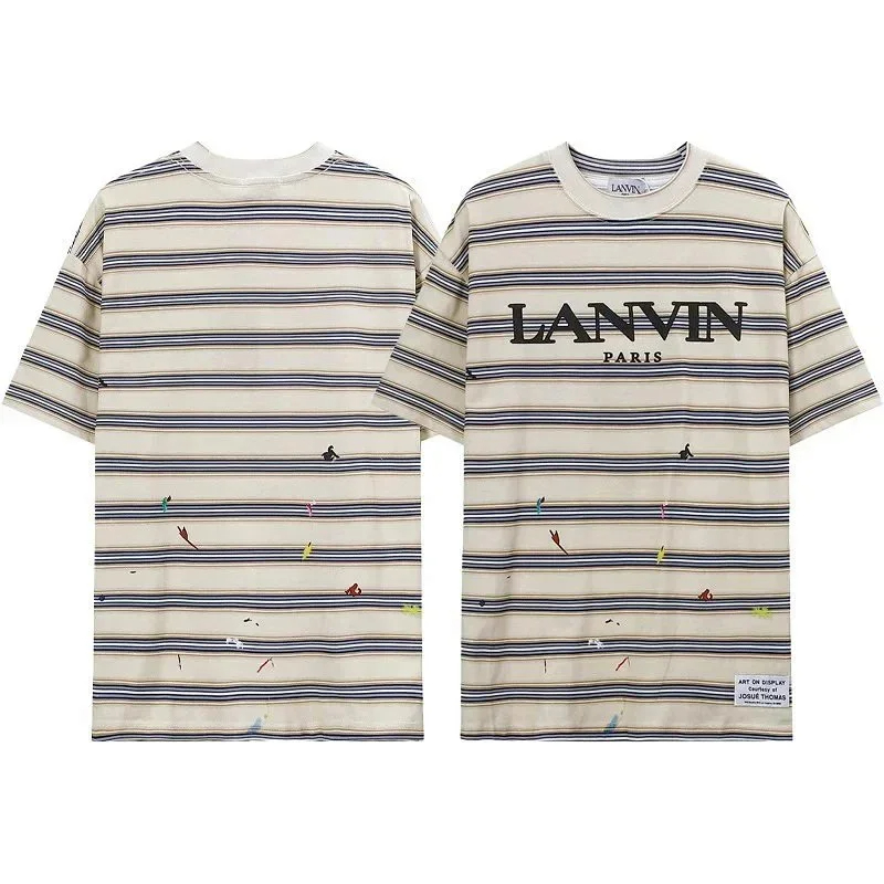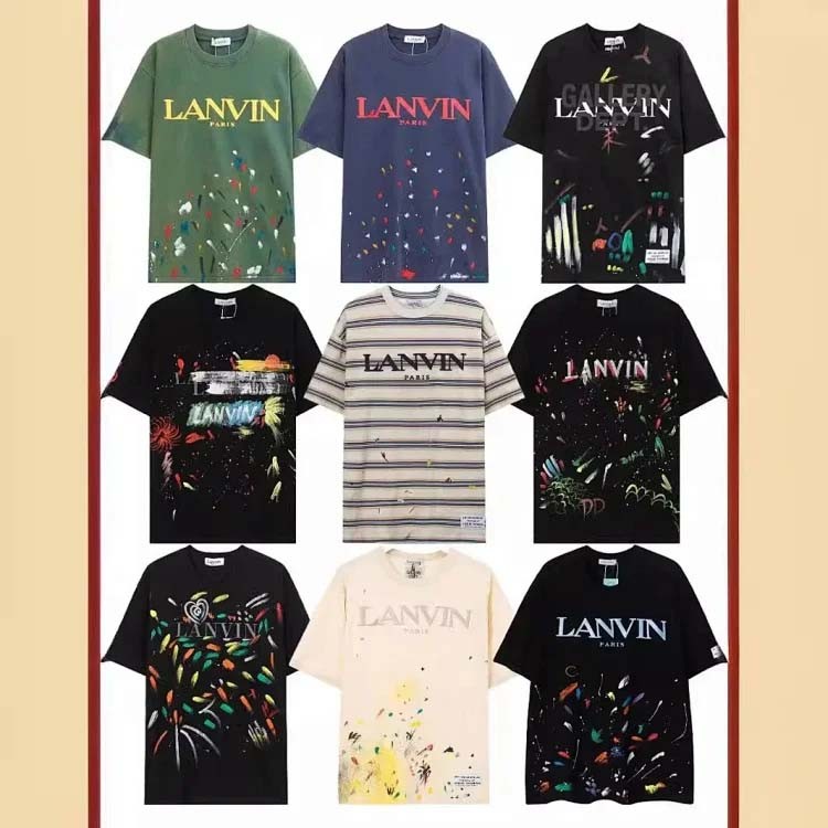 Home > Lanvin European and American classic embroidery print ink splash men's short-sleeved T-shirt-1880