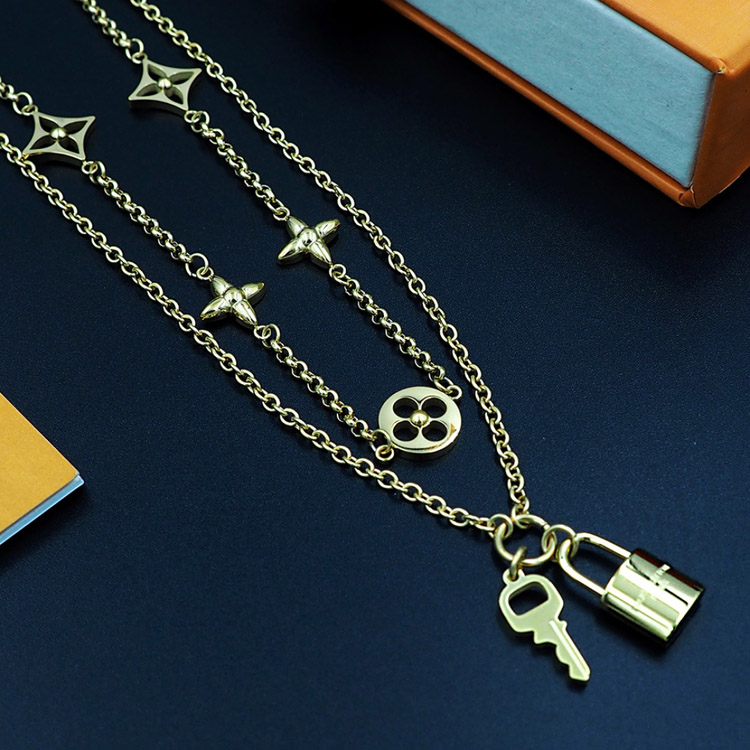 Louis Vuitton LV detachable double chain floral and letter pattern padlock necklace-3808