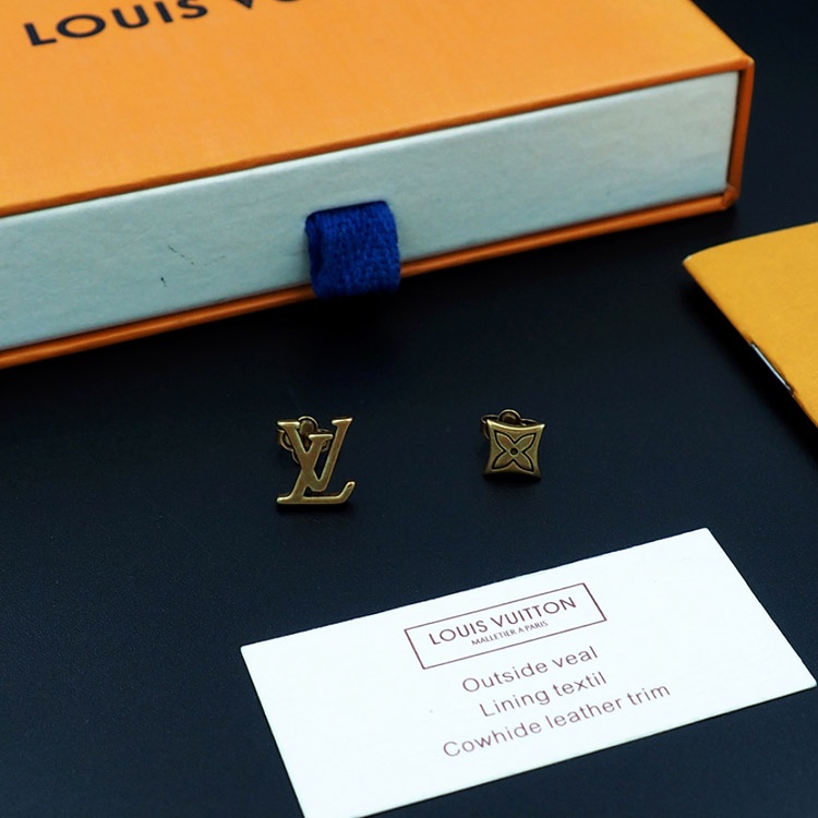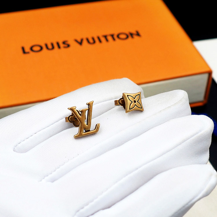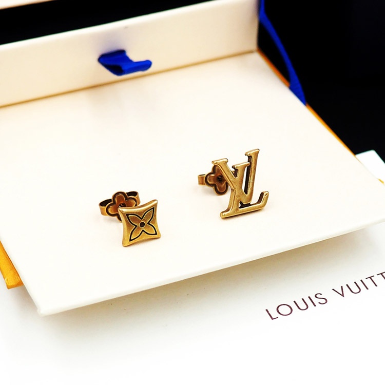 Home > Louis Vuitton LV Letter Floral Brass Distressed Earrings-3575