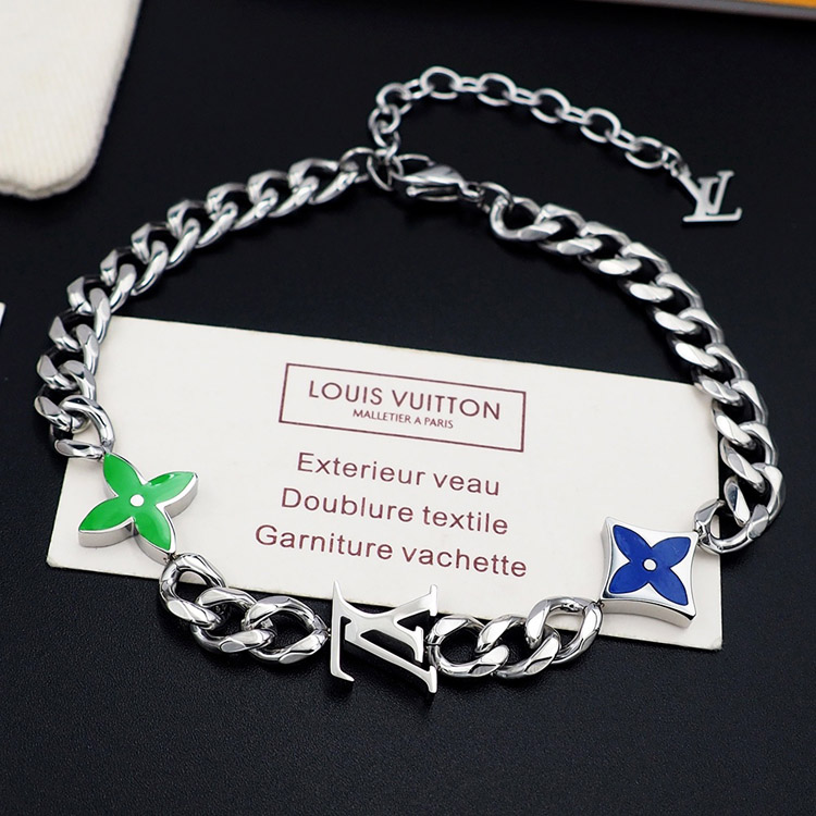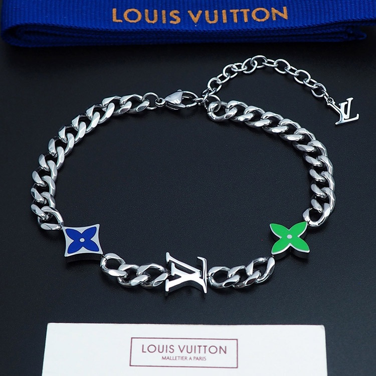 Louis Vuitton LV metal chain blue-green enamel bracelet-4053