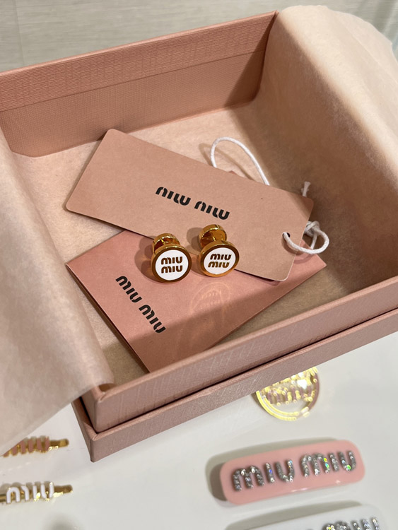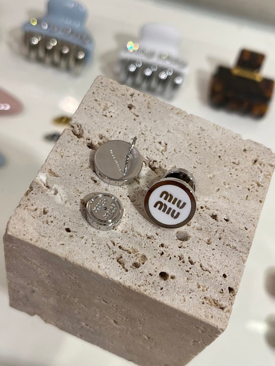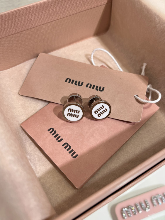 MIUMIU white enamel letter metal round button earrings-3892