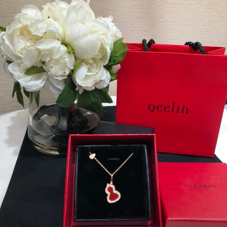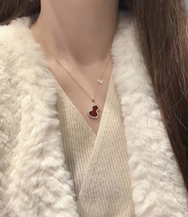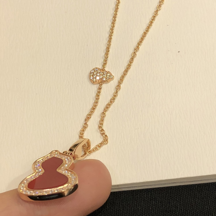 Qeelin Diamond and red obsidian double gourd necklace-3884