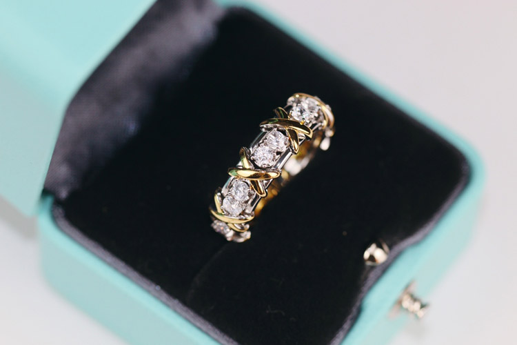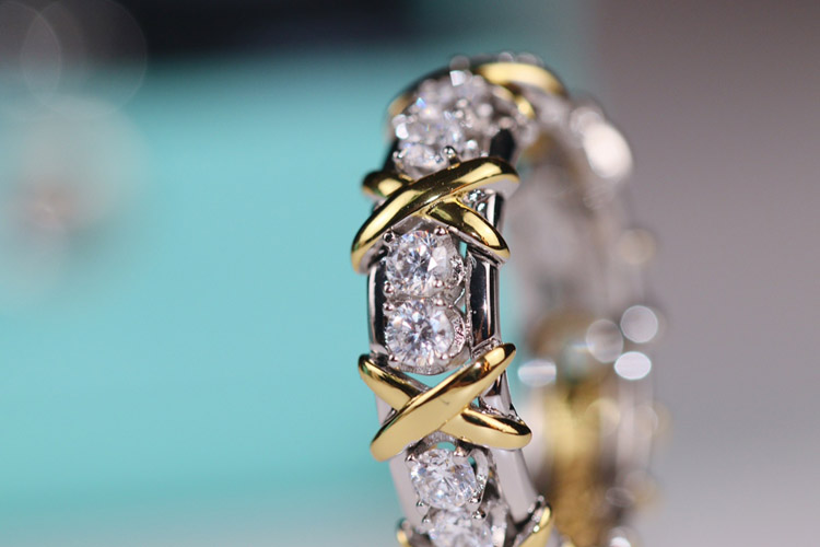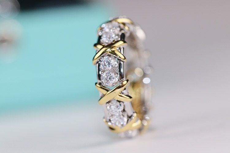 Home > Tiffany full row diamond cross X ring-3675
